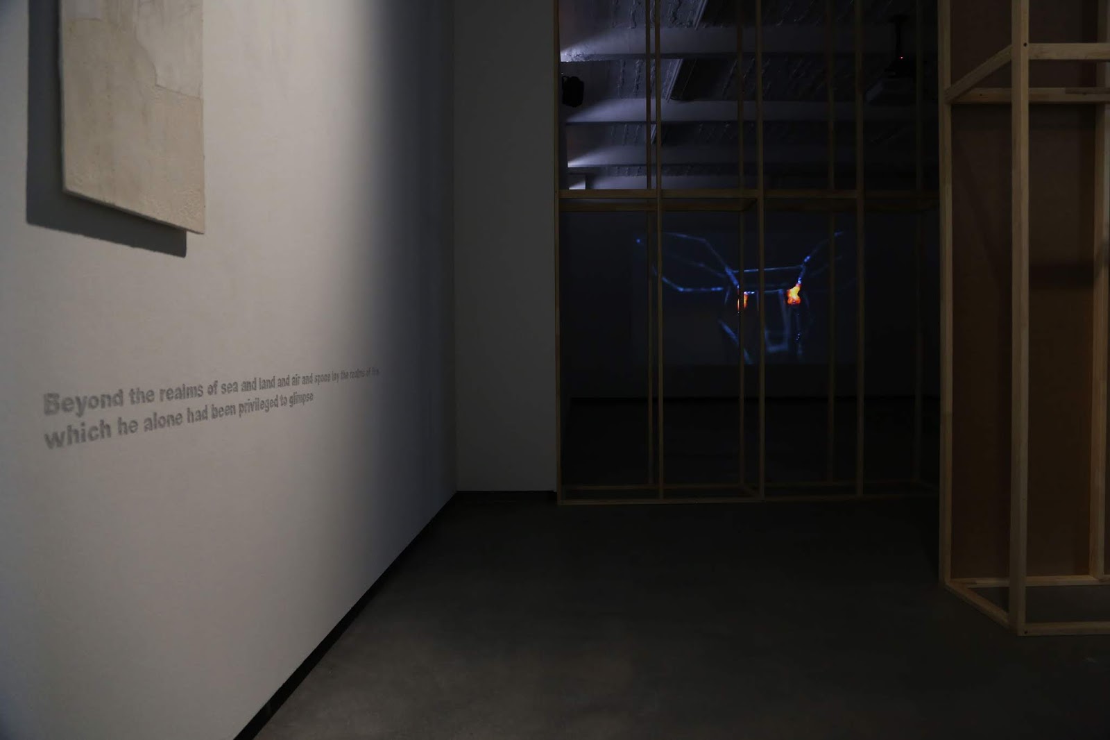 The exhibition is named after the term from behavioural science. Phototaxis is the bodily movement of a botanical organism in response to light, either towards or away from it. Through, light, the artist metaphorizes the pre-existed traces and silhouettes in contemporary world; by video and embossing installation, he extends the dialectics of different space and time about biology, minerals, history, religion, and science.